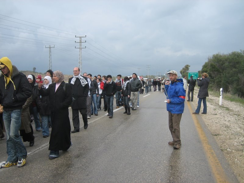 Before the Erez crossing: leaving the cars and marching towards the Gaza Strip
