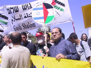 At the head of the march: Member of the Palestinian Parliament, Abd al-Kader, Uri Avnery and MK Ahmed Tibi.