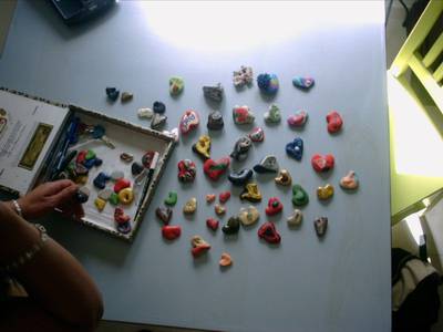 Kawther watching the hearts found on the beach